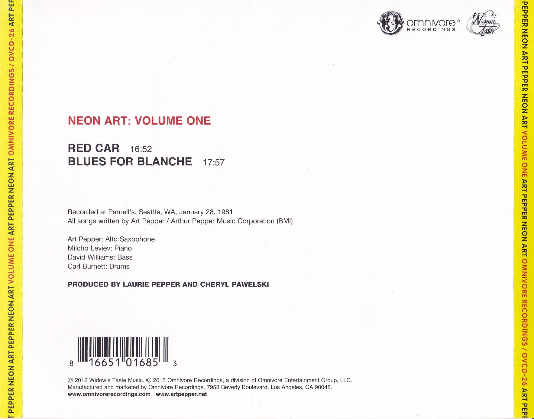 | Band: Art Pepper | Title: Neon Art Volume 1 | |||