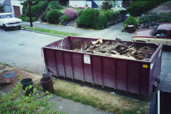 dumpster on the sidewalk, so we had to slide all the old junk down a
